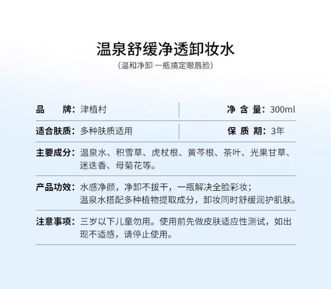 津植村温泉舒缓净透卸妆水300ml 面部清洁产品生产基地 护肤品代加工厂