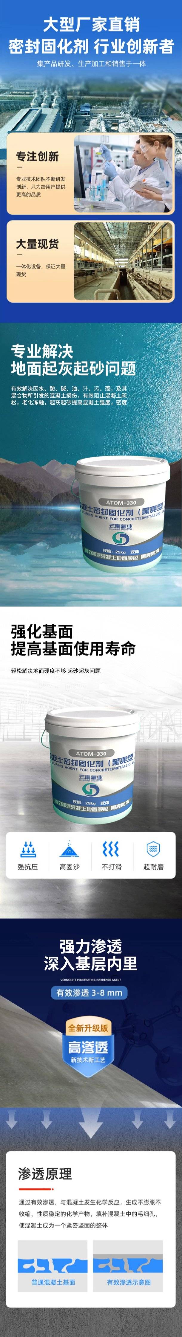 云 南厂家批发 增强型密封固化剂 强化基面 提高基面使用寿命