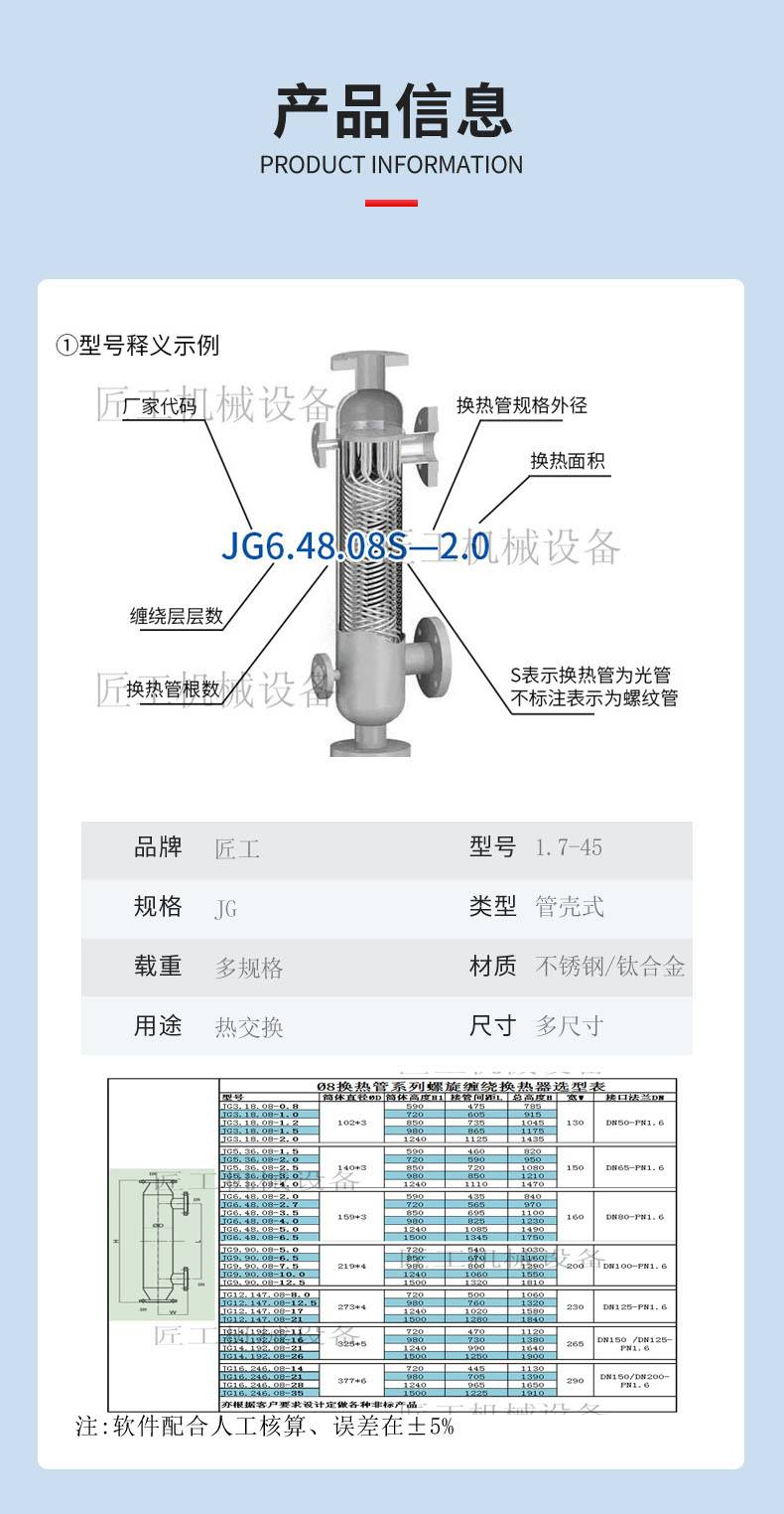 冷却器螺旋缠绕管换热器厂家汽水换热医药中间体冷凝器