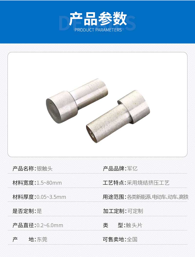 军亿银触头氧化 银触片动静配件 新能源应用 定制