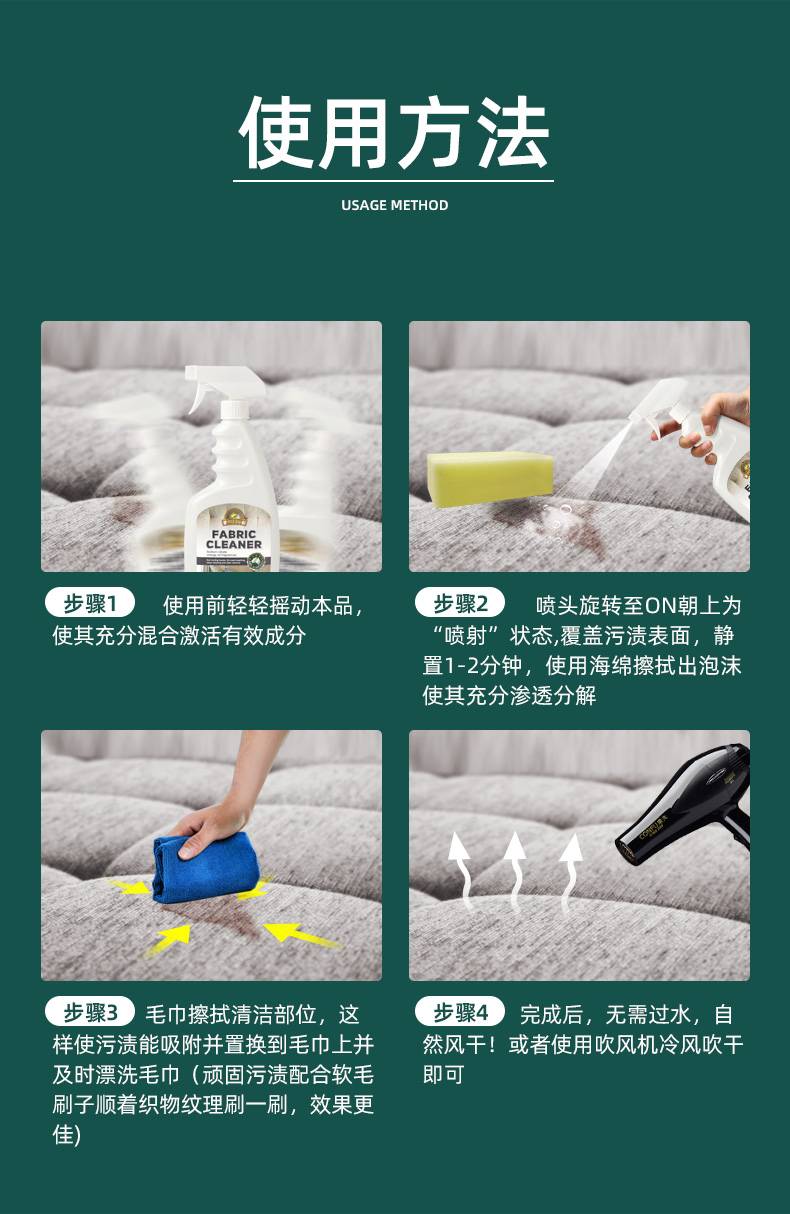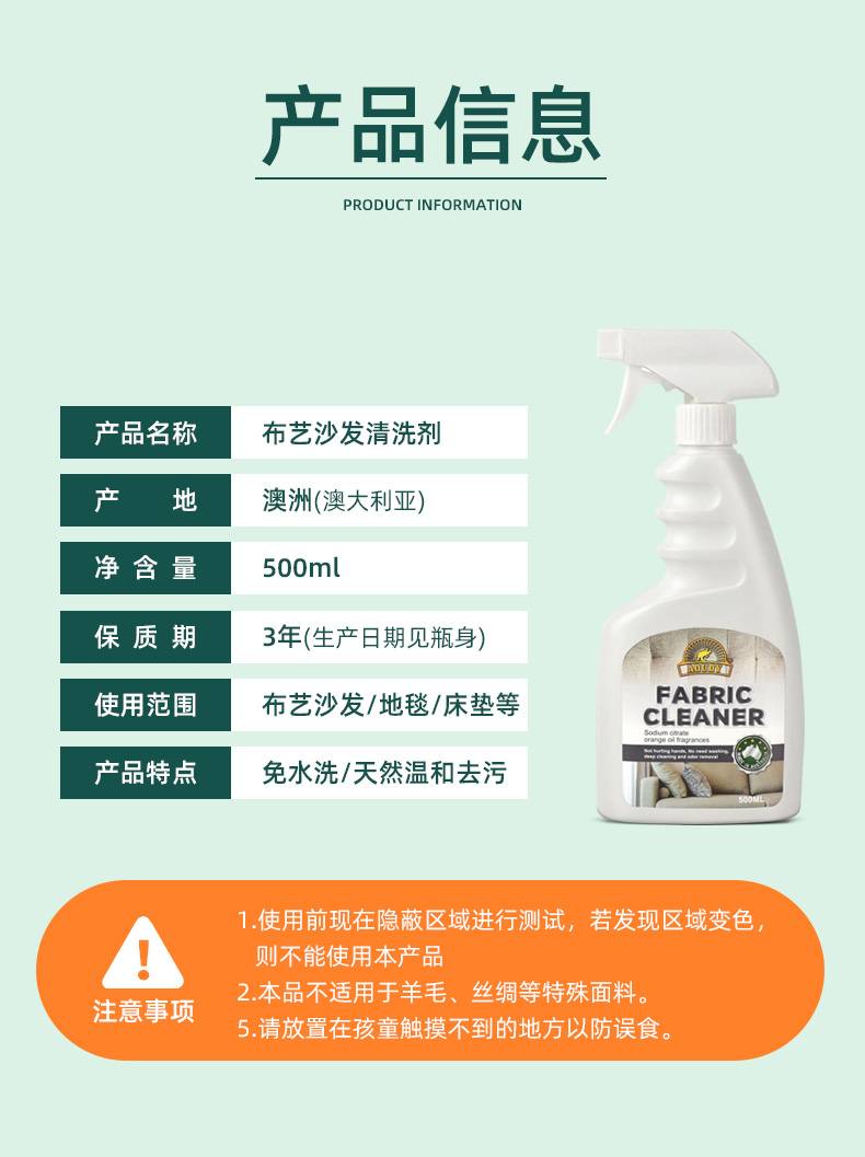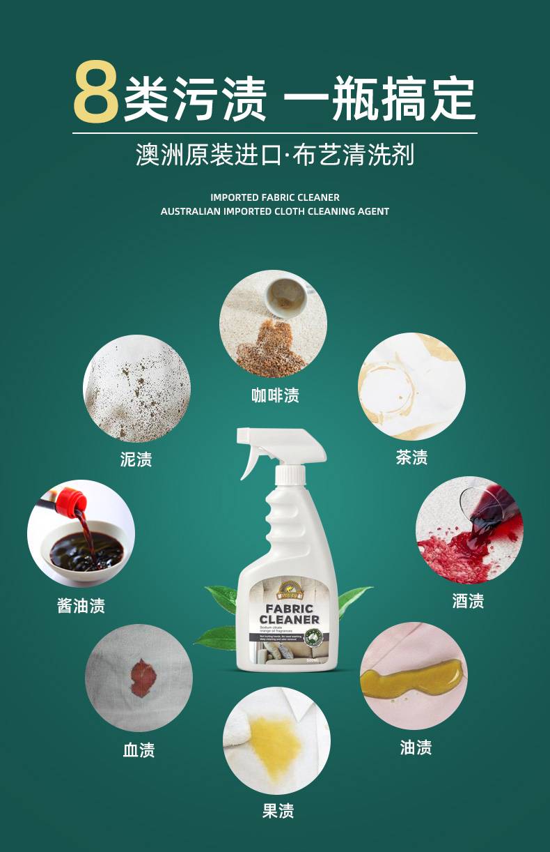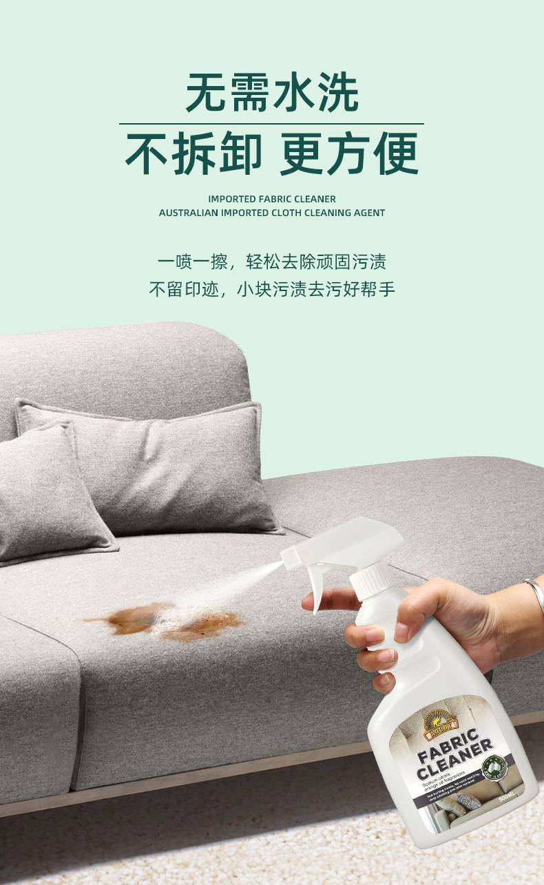 澳洲布艺沙发地毯清洁剂免水洗墙布床垫窗帘干洗清洗强力免洗去污