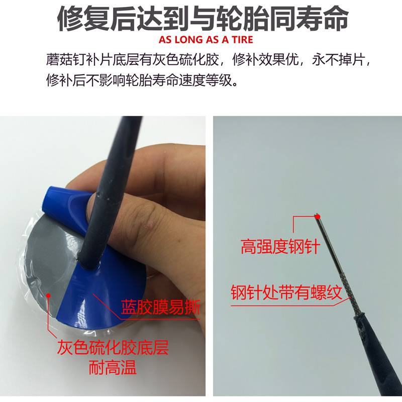 'rrr送胶水/补胎蘑菇钉胶片3/4.5/6mm补胎图钉塞汽车真空胎补胎胶片皮