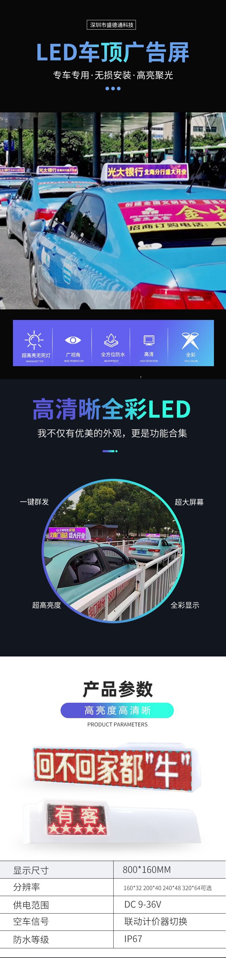 厂家供应 车顶灯 车载led 4G广告屏GPS北斗全球定位 SDT02
