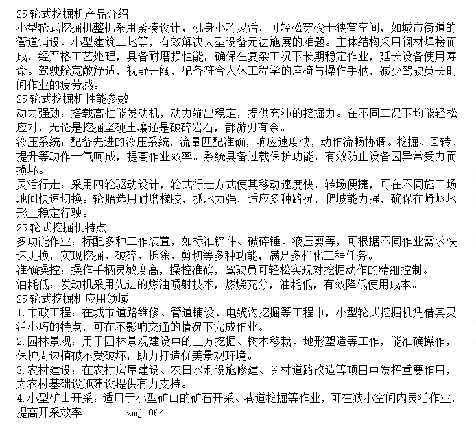 25轮式挖掘机 机身小巧灵活 结构紧凑 操作简单