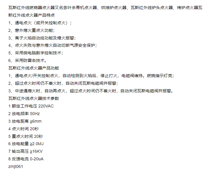 瓦斯红外线点火器 烤炉点火装置 离子火焰自动控制 熄火报警