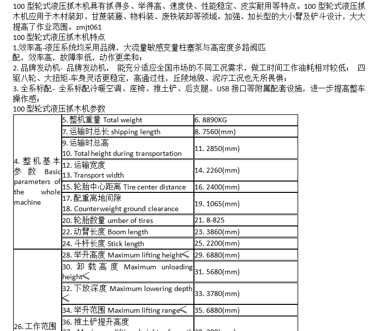 100型轮式液压抓木机 抓得多、举得高、速度快、皮实耐用