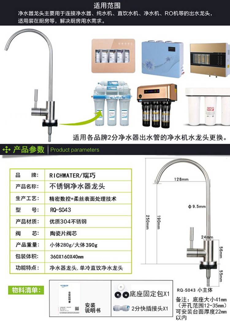 净水器水龙头细水嘴家用纯净水机净水龙头2分直饮水304不锈钢配件