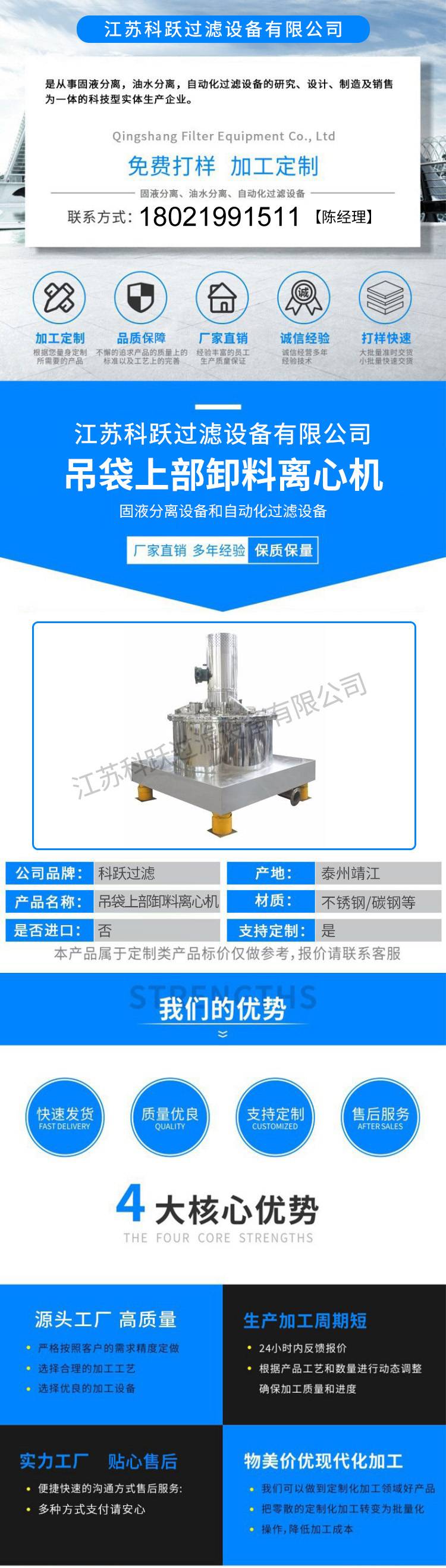 吊带式上部卸料离心机 立式平板式 外观整洁 科跃制造