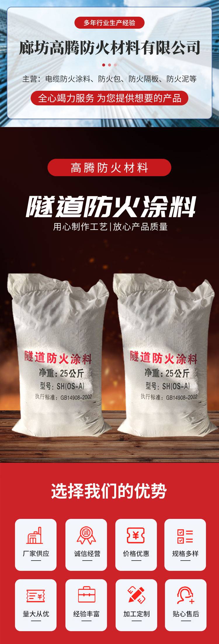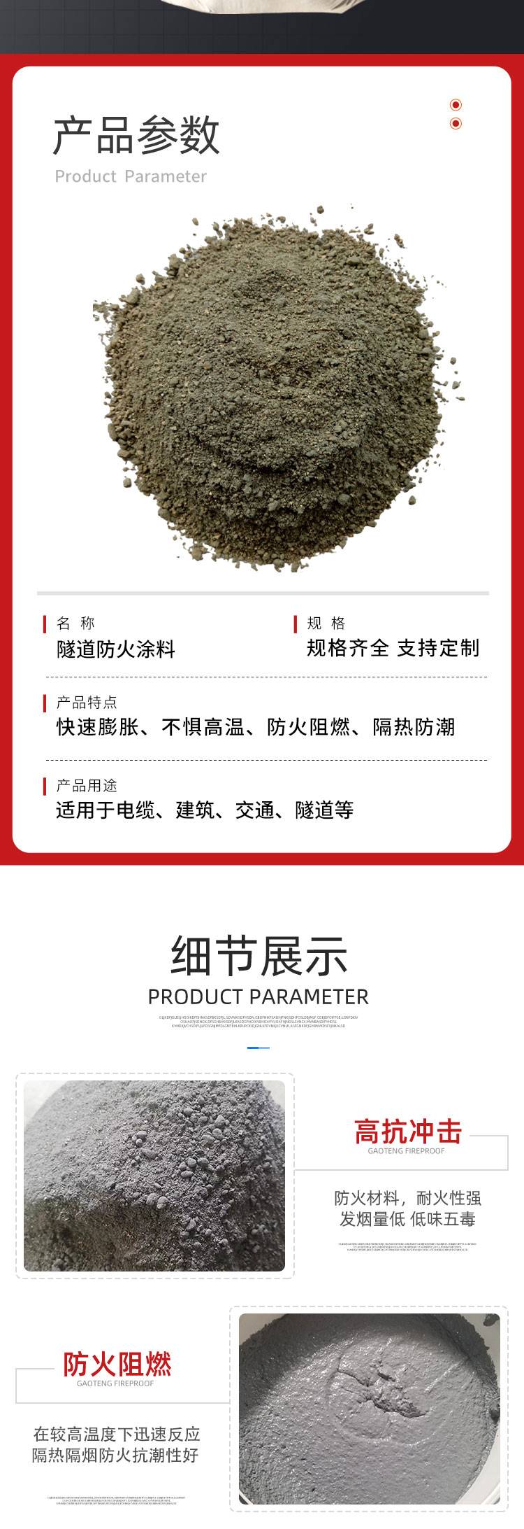 高速公路隧道防火涂料 防火阻燃 现场施工用 长期现货 高腾