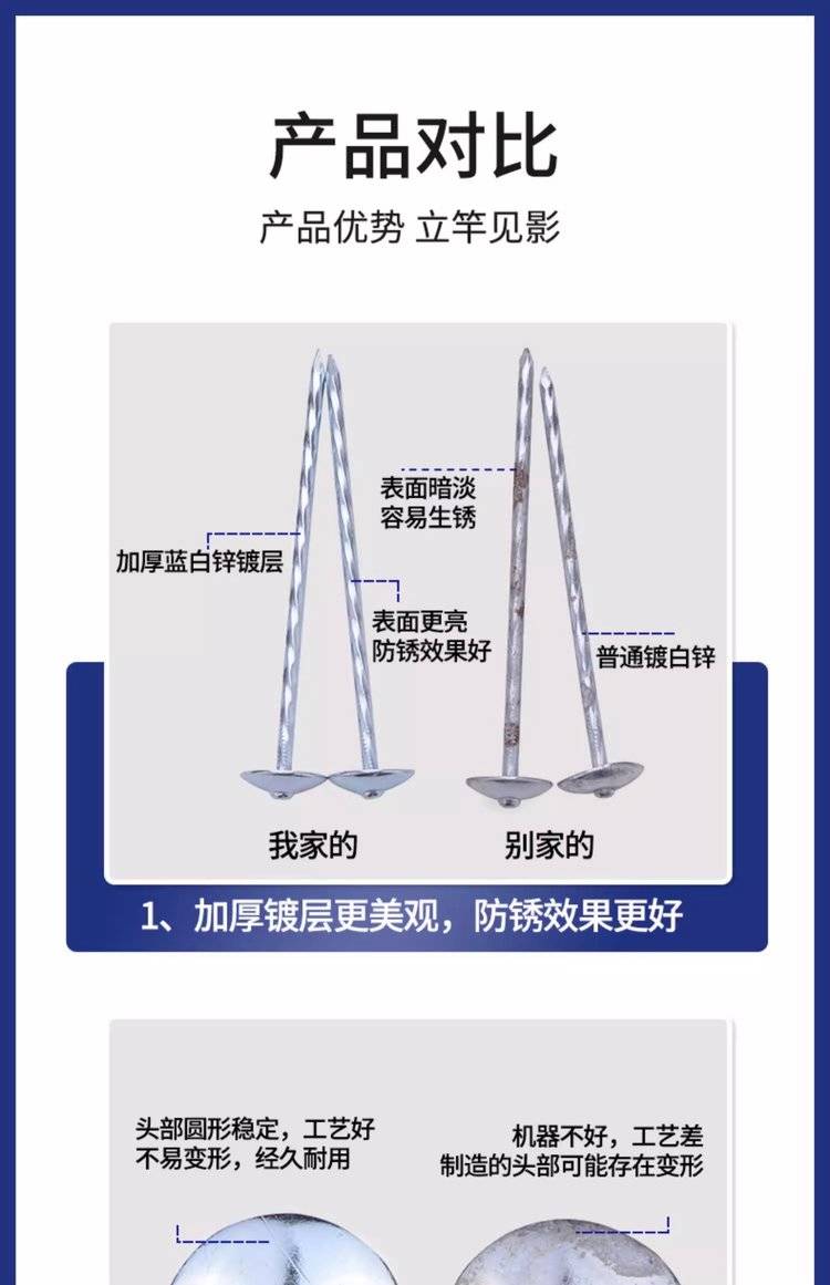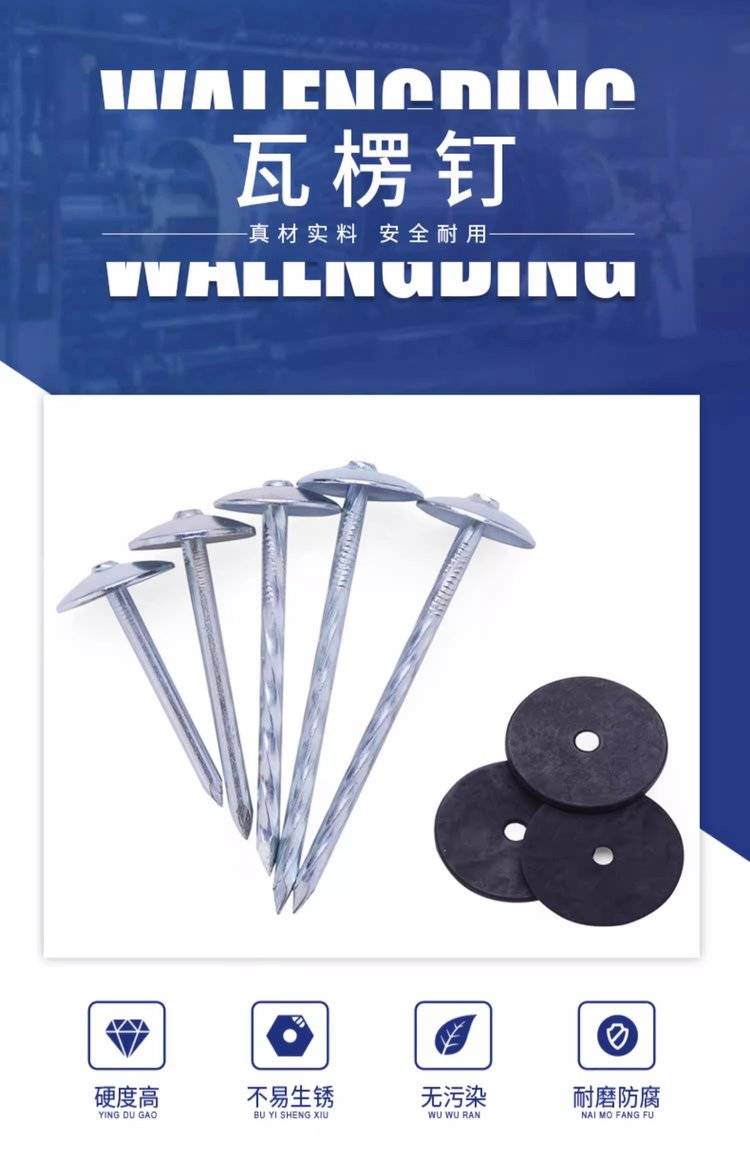 石棉瓦钉瓦楞钉大头钉彩钢麻花钉图钉1.5寸2寸2.5寸3寸4寸可定制