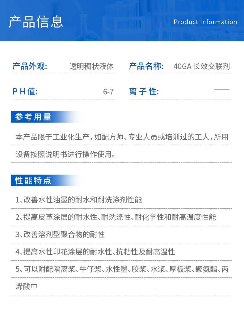 太洋环保40GA长效交联剂 提高水性印花涂层的耐水性抗粘性耐高温性