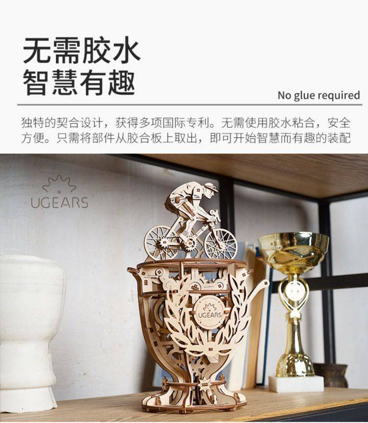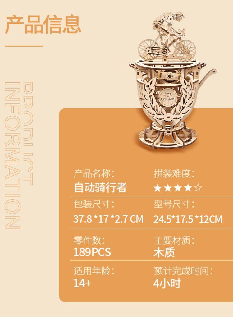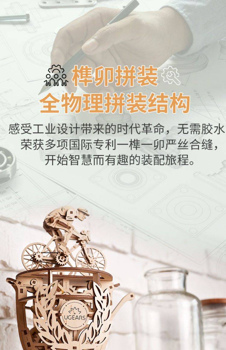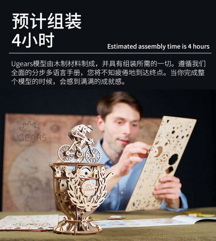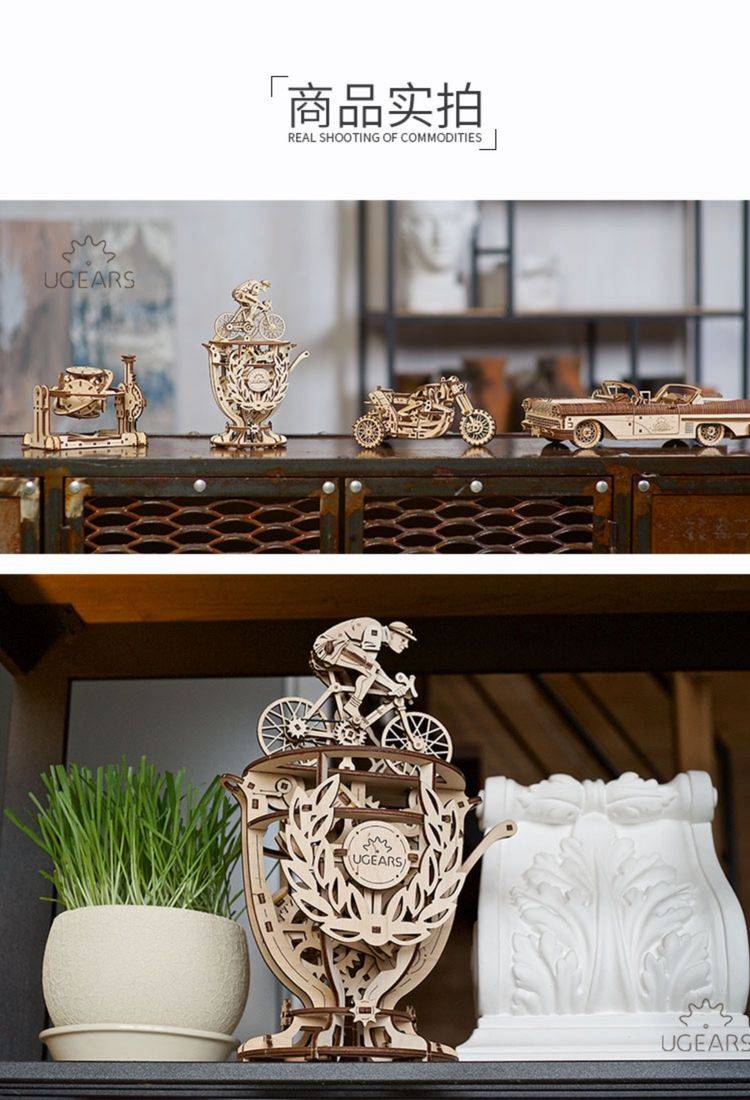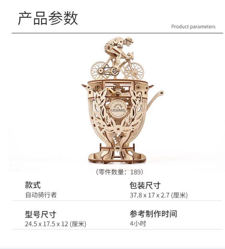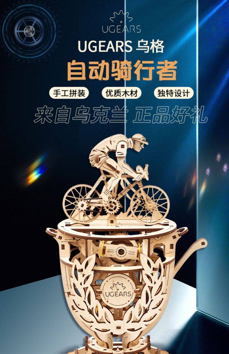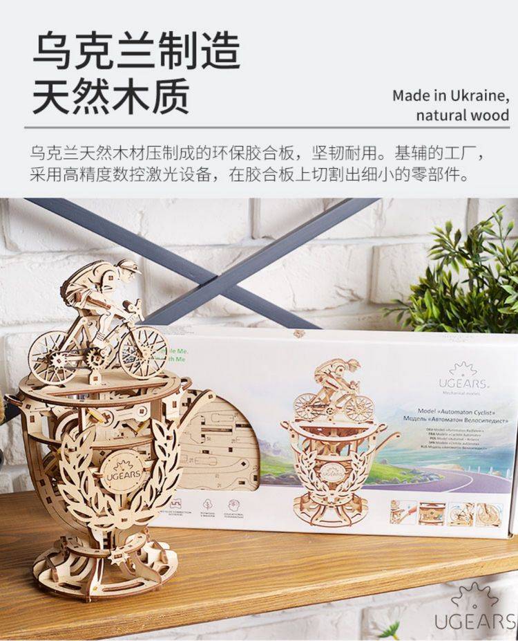 UGEARS自动骑行木质拼图 手工机械DIY玩具 独特设计