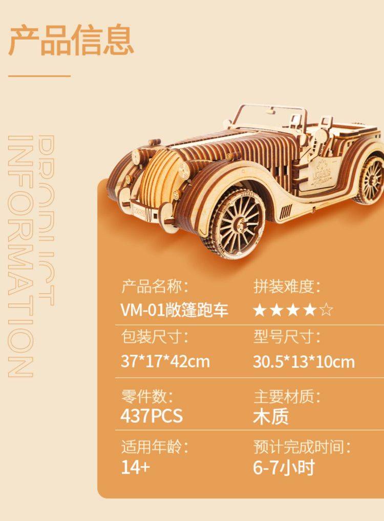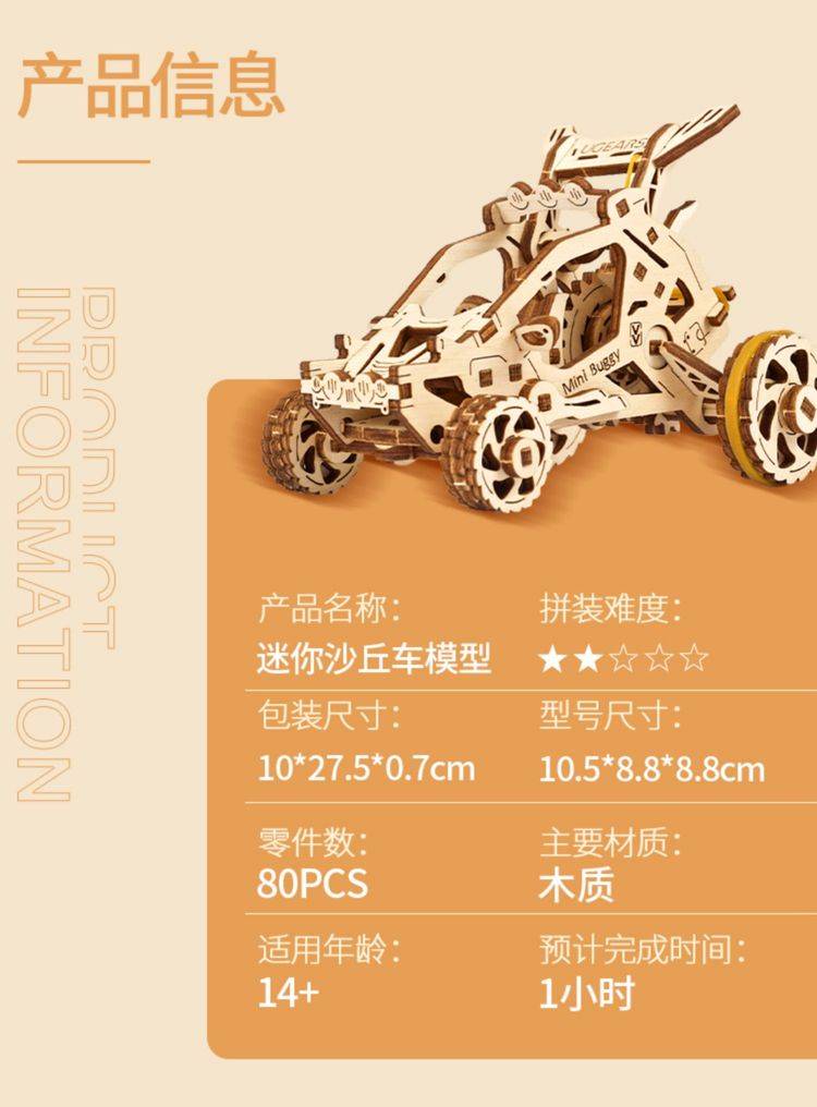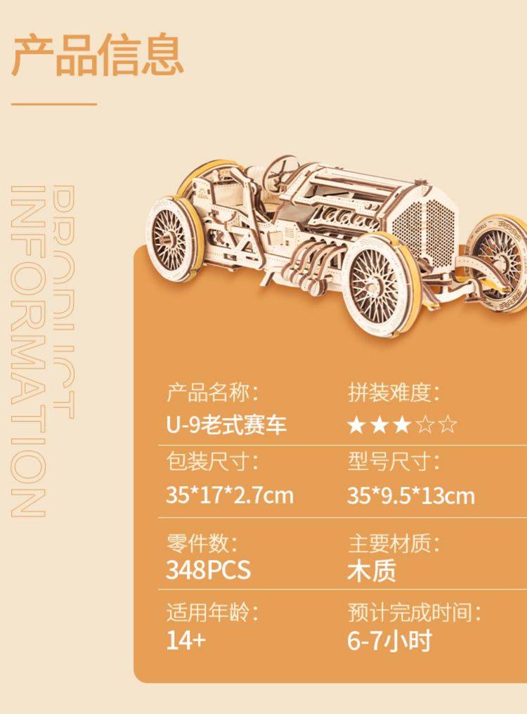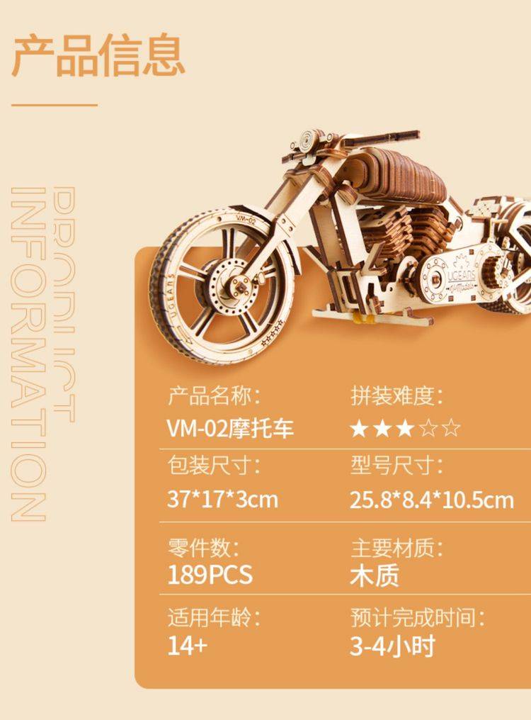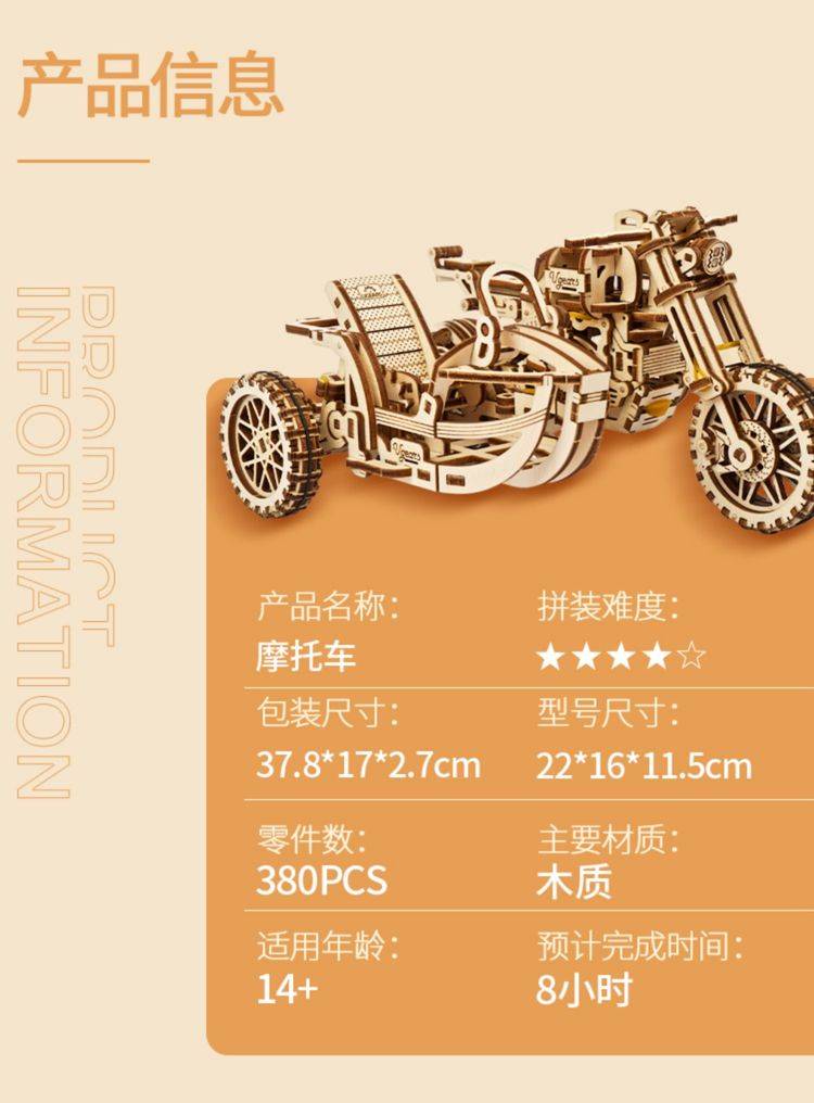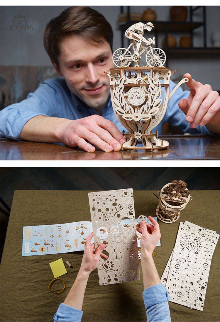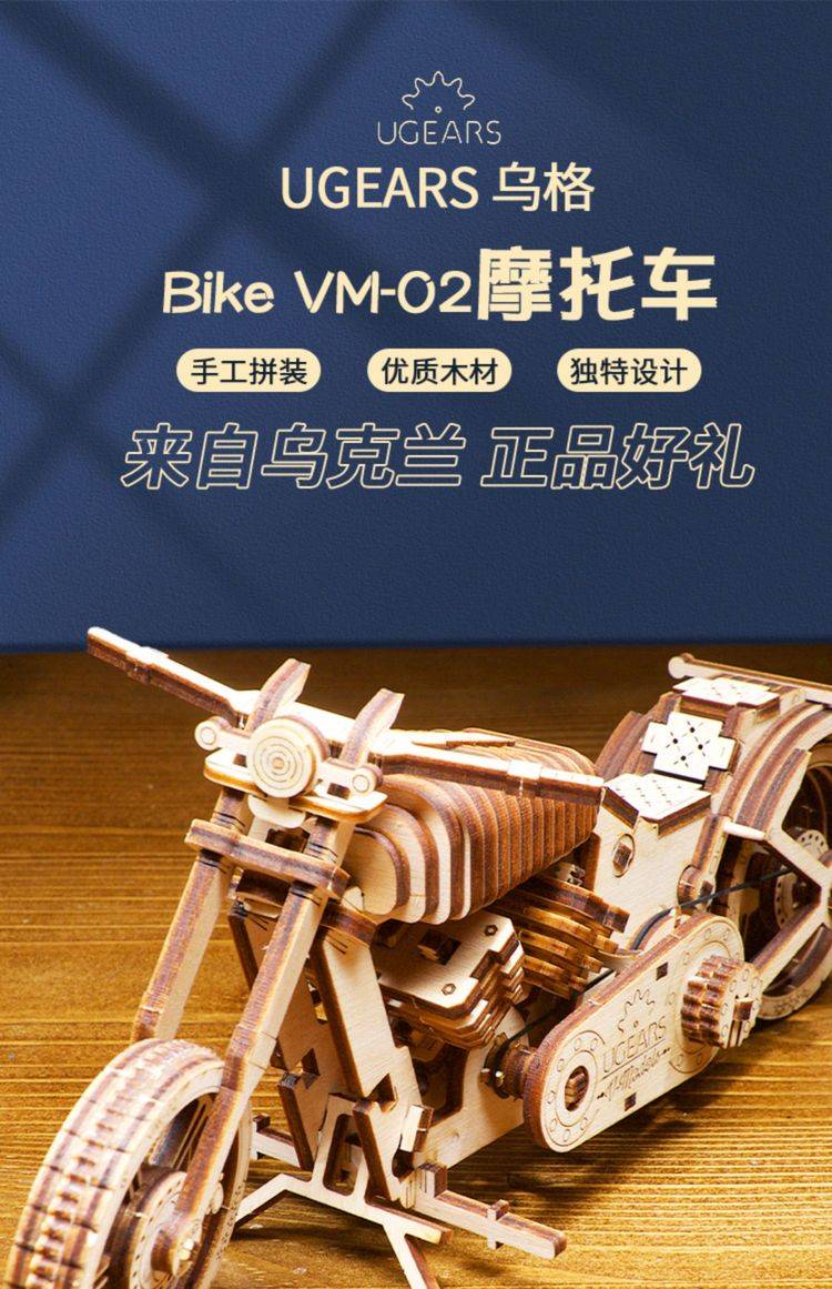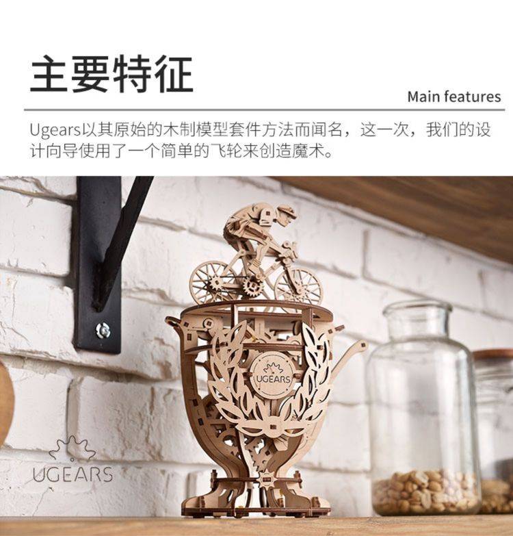 UGEARS自动骑行木质拼图 手工机械DIY玩具 独特设计