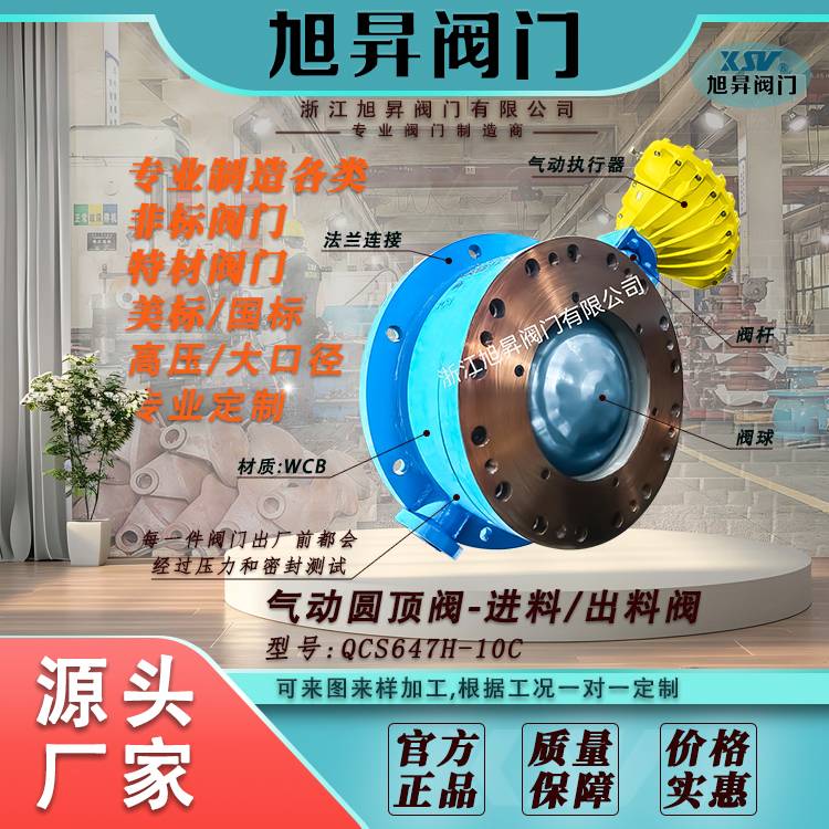 旭昇气动圆顶阀QCS647H-10C碳钢法兰阀门耐磨耐腐蚀源头阀门制造
