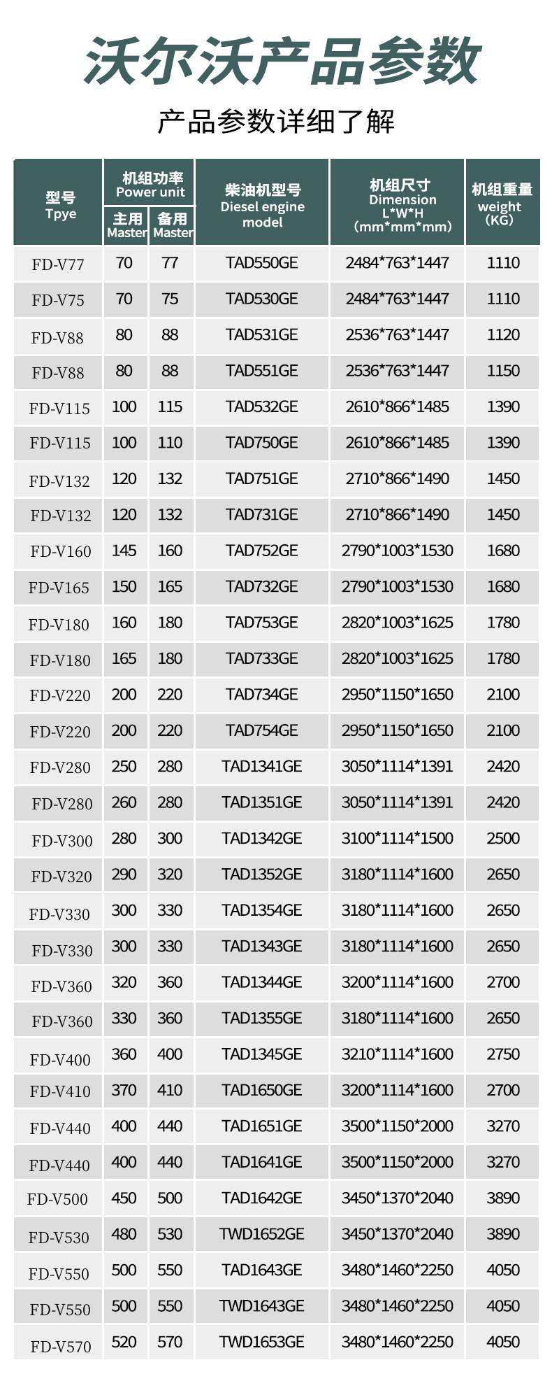 进口沃尔沃80/100/150/200/300/400/450/500千瓦开放式柴油发电机