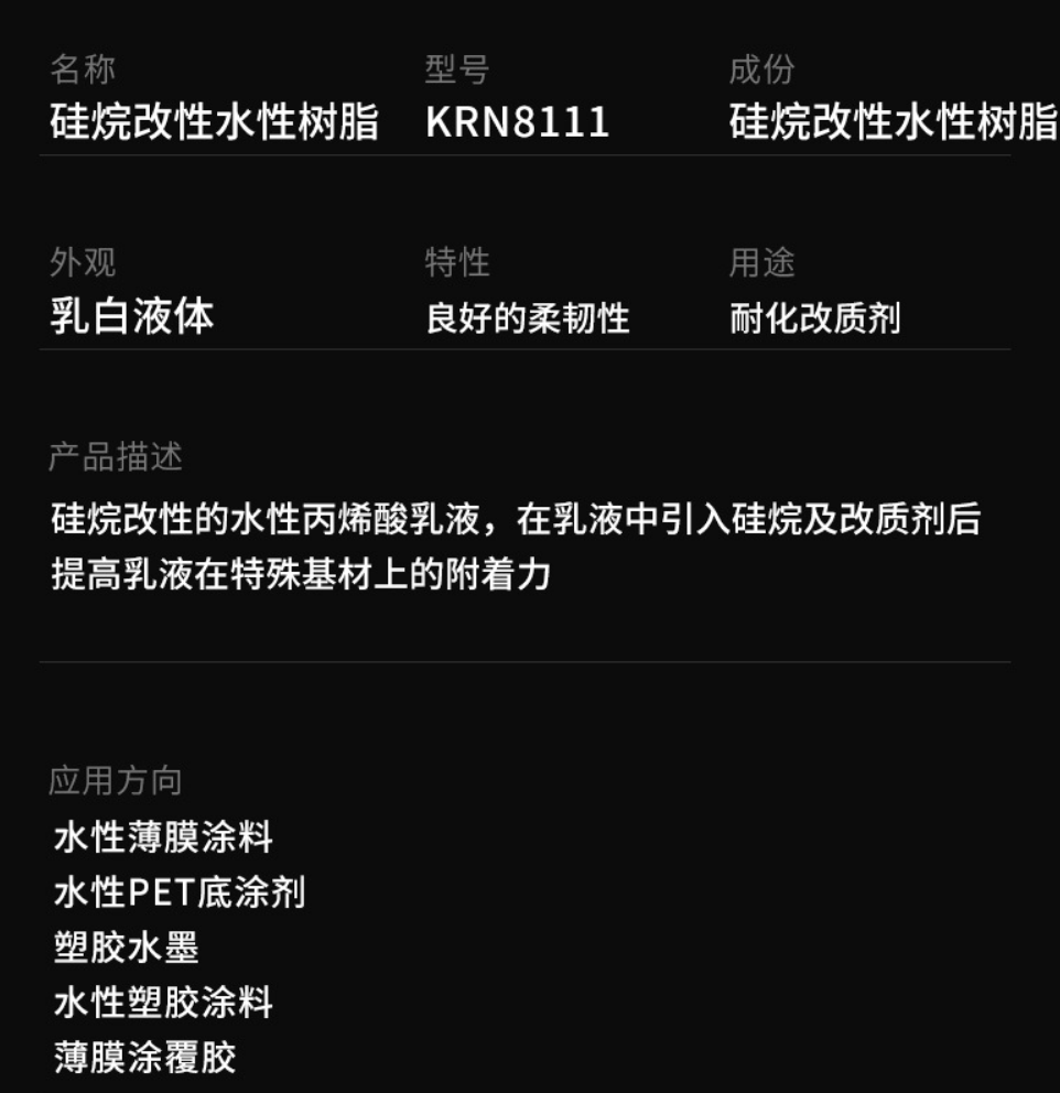 KRN8111硅烷改性水性丙烯酸乳液 抗回粘水 性塑料涂料金属涂料