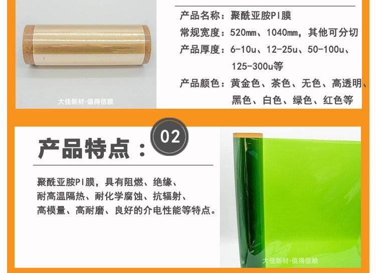 大佳供应 金黄色聚酰亚胺膜 无卤阻燃高温PI膜 颜色规格多样 样品免费