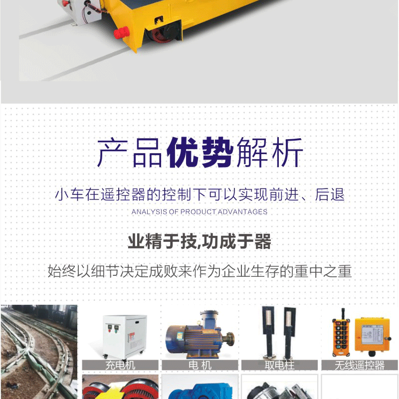 工业平板遥控车工厂导轨运输小车电动转运平台轨道地平车