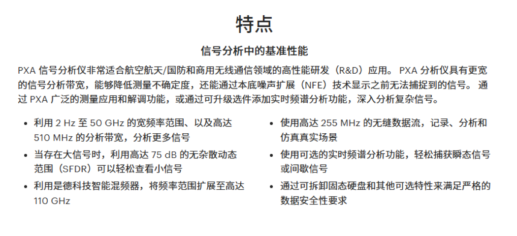是德N9030B频谱信号分析仪高达75dB无杂散动态范围精确测量小信号