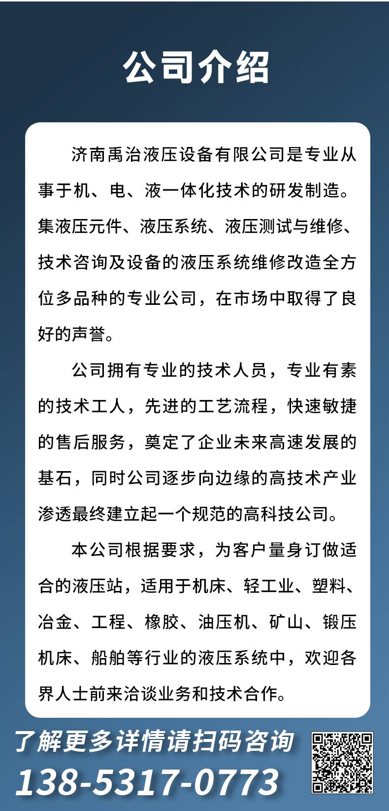 液压供给系统 用于精密零部件加工 便于维护 禹治