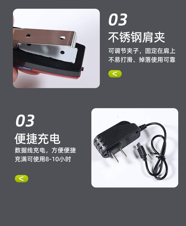 多用途充电灯肩警示闪光灯夜跑户外红蓝肩灯夜间骑行照明灯