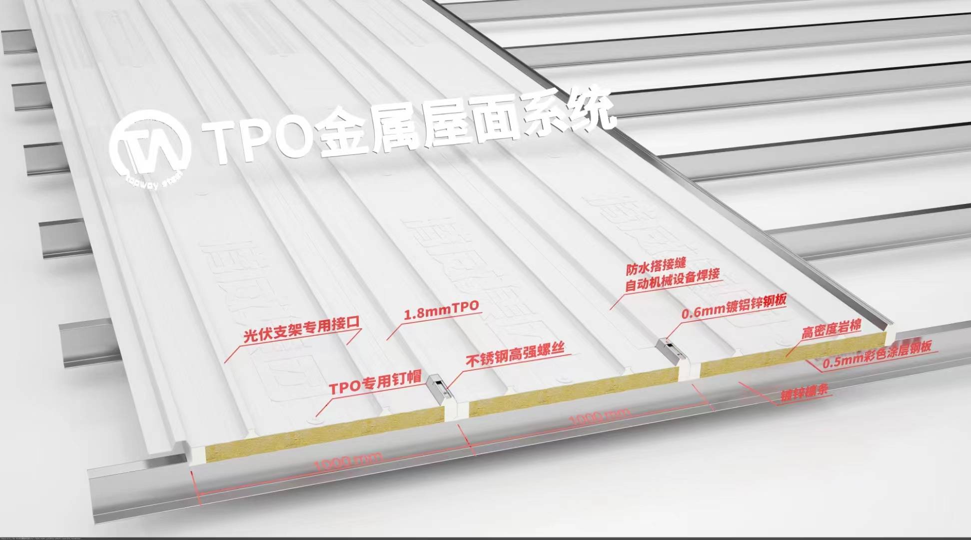 TPO融合瓦热塑性TPR复合屋面板1.5/1.8mm聚烯烃+0.6mm镀锌板