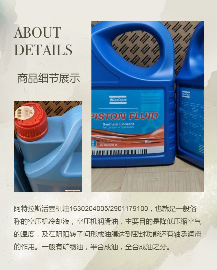 ATLAS阿特拉斯空压机活塞机油1630204005 5L寿命长