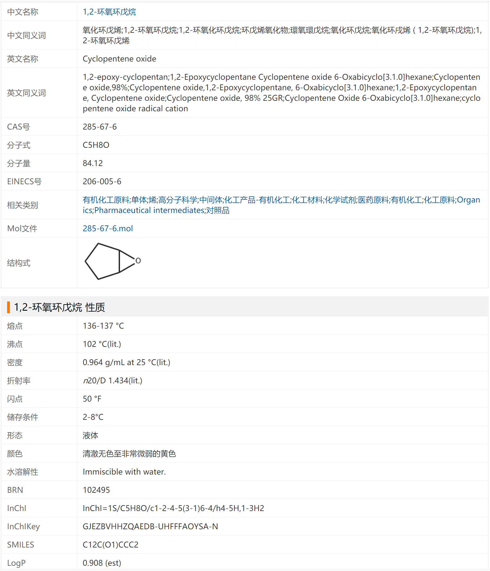 1,2-环氧环戊烷 285-67-6 含量99% 氧化环戊烯 烃类衍生物 无色油液体