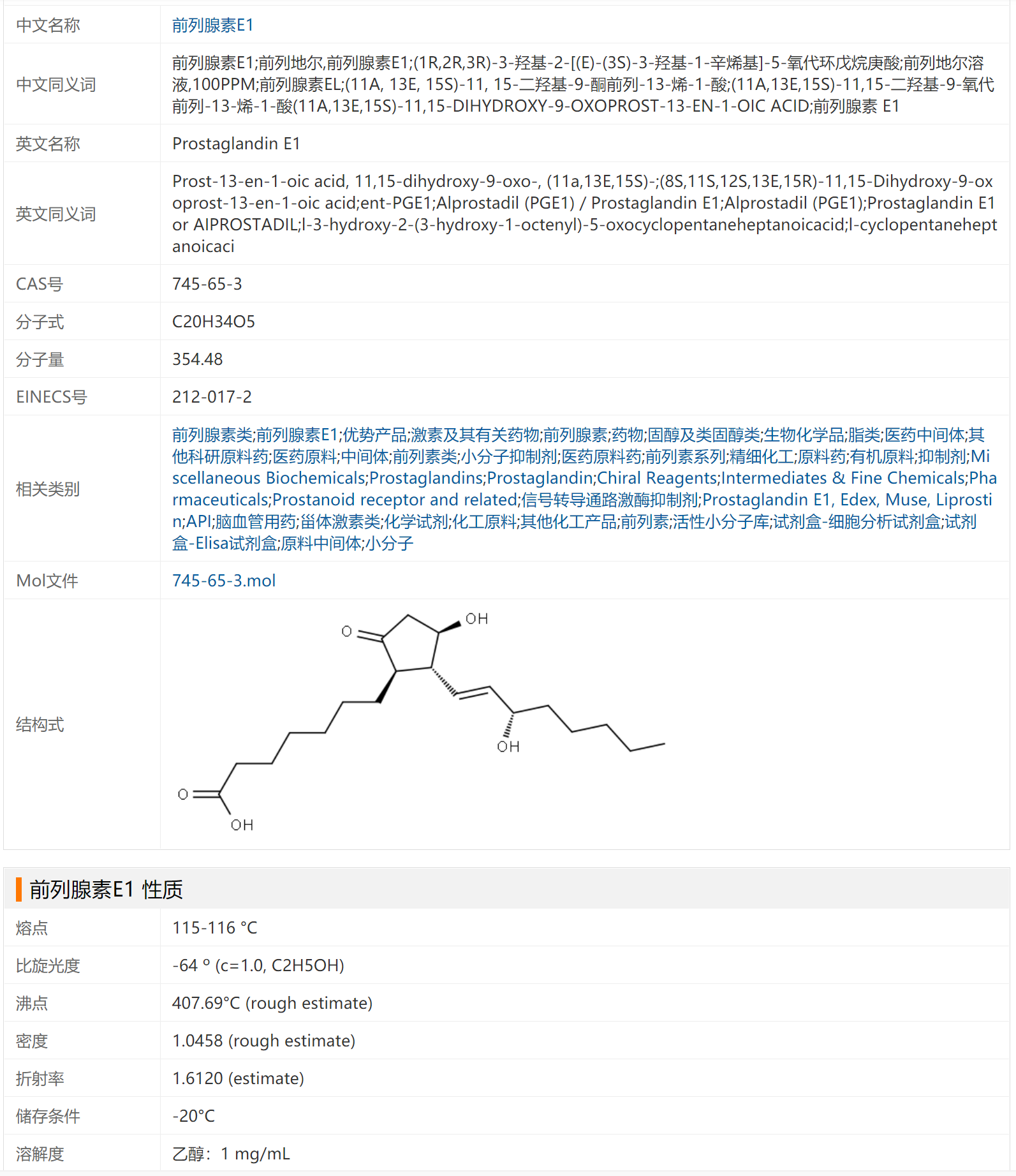 前例地尔 745-65-3 含量99% 环戊烯衍生物 生物化学品 1000g