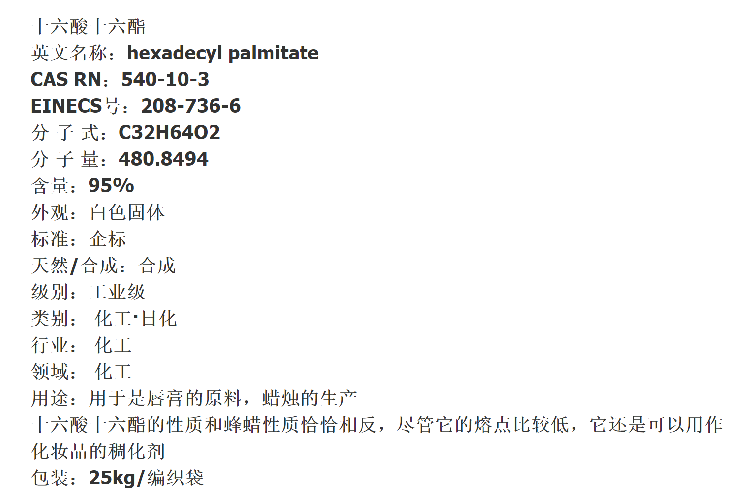 十六酸十六酯 540-10-3 含量95% 酯类油乳化剂 25kg/编织袋