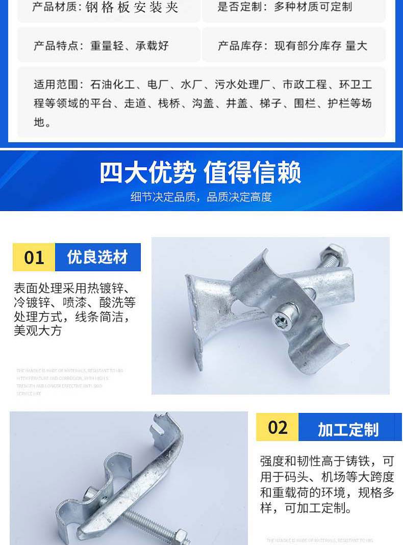 热镀锌钢格栅板夹批发 线条简洁,美观大方 实力供应