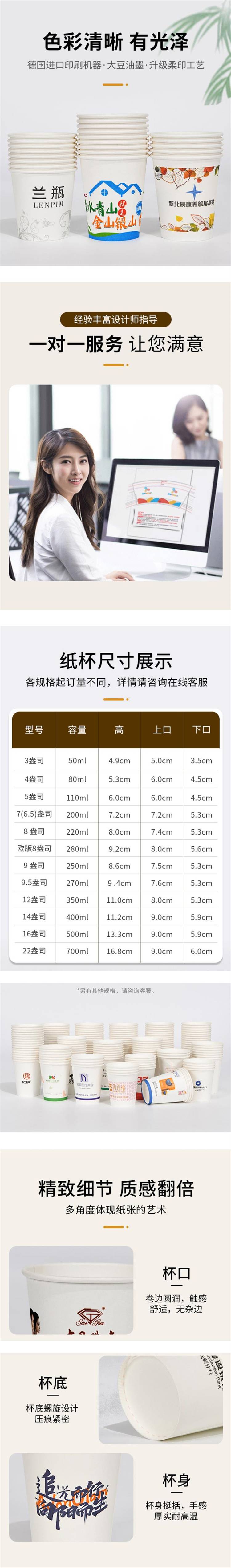 一次性纸杯定制印刷 加厚材质 纸张艺术卷边圆润 触感舒适无杂边