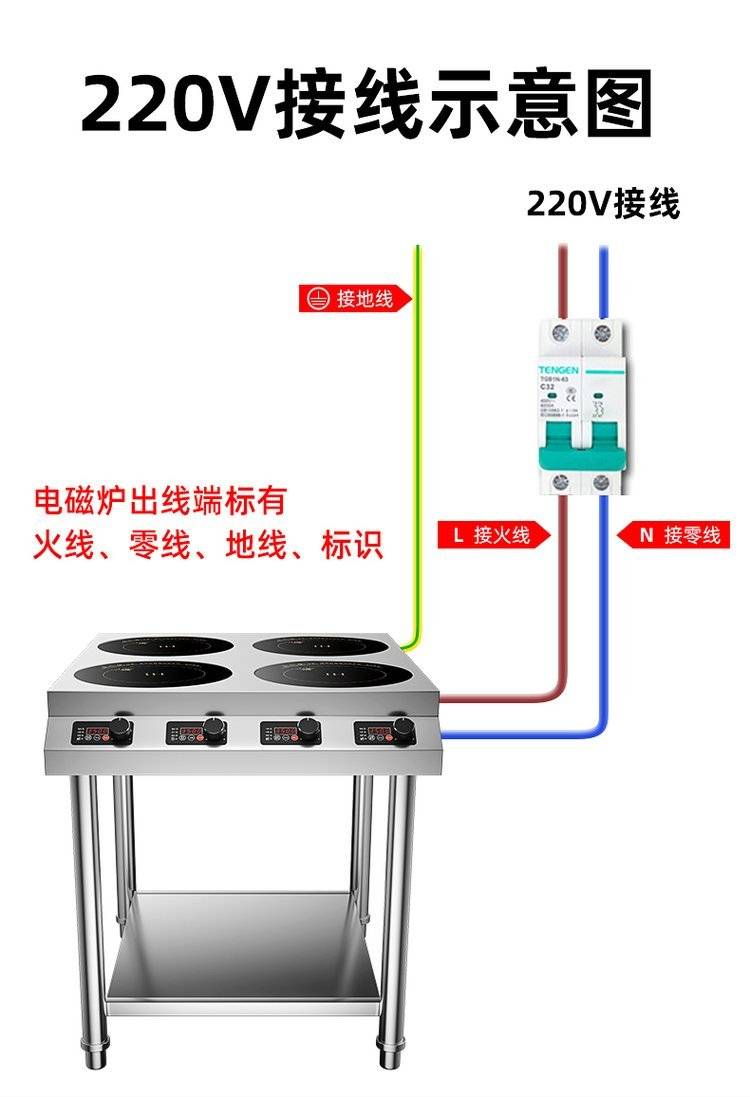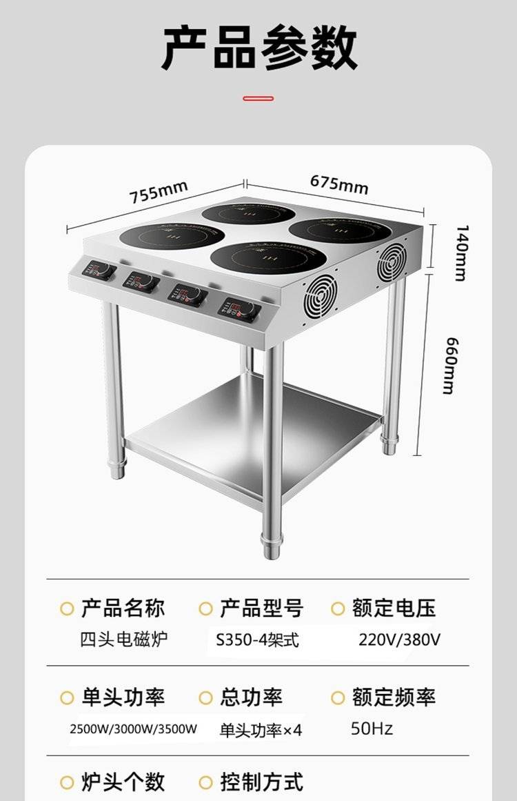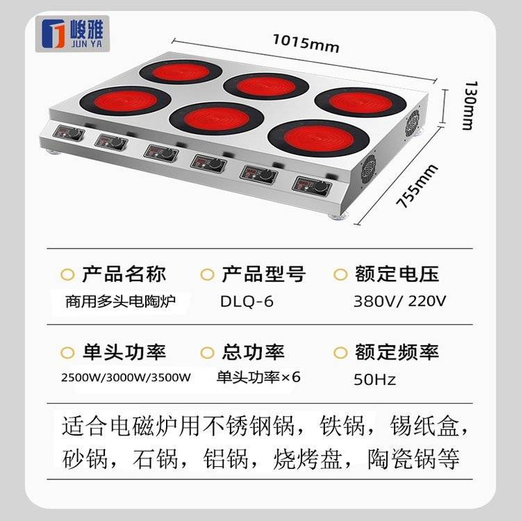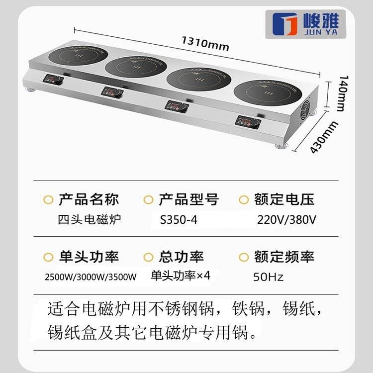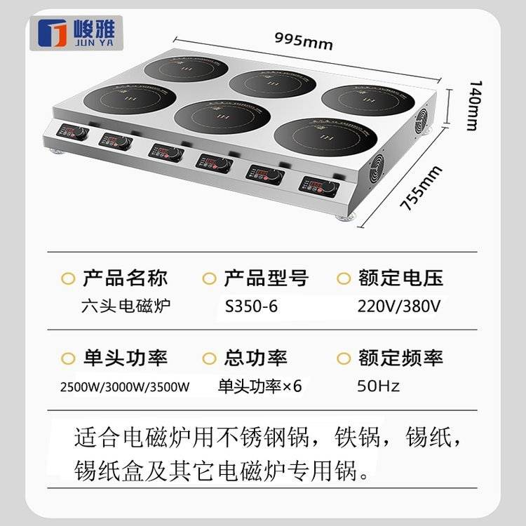 峻雅商用电磁炉多头四眼电陶炉多灶头六个孔位电磁灶多锅锡纸饭店