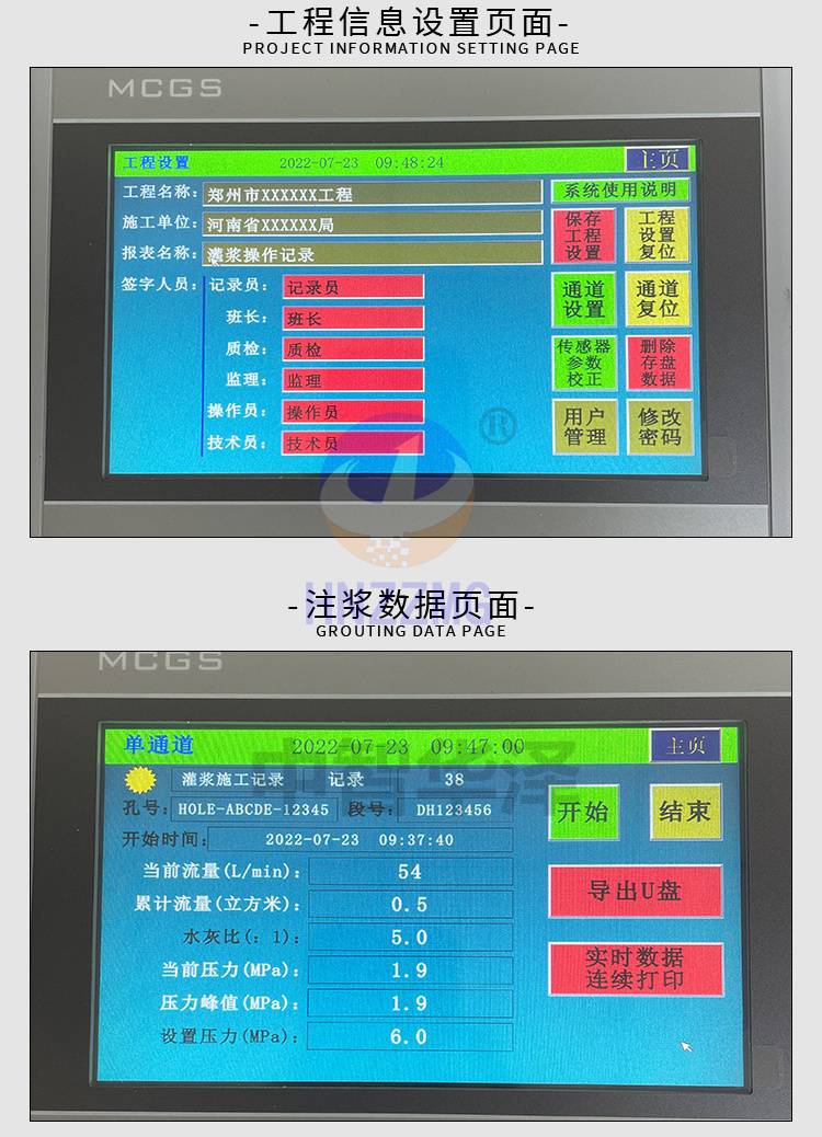 灌浆记录仪多功能注浆触摸大显示屏可打印小票水泥注浆