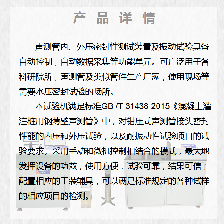 一格仪器 YG-SCG6型声测管密封性能及振动试验机 声测 管内外压检测