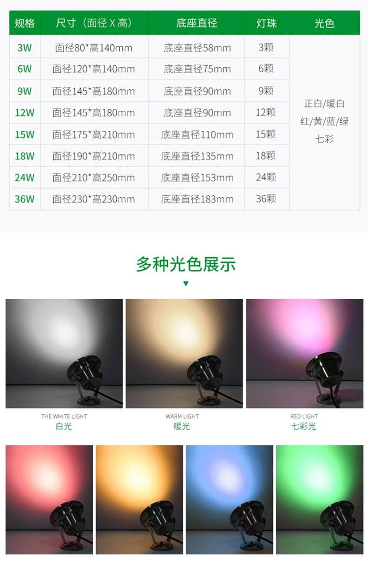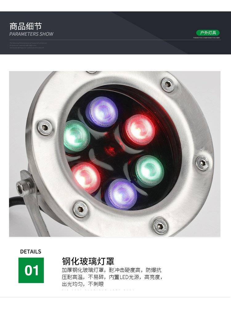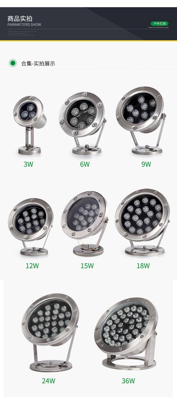景观鱼池壁挂式不锈钢RGB七彩投射灯LED水底灯假山喷泉水下灯具