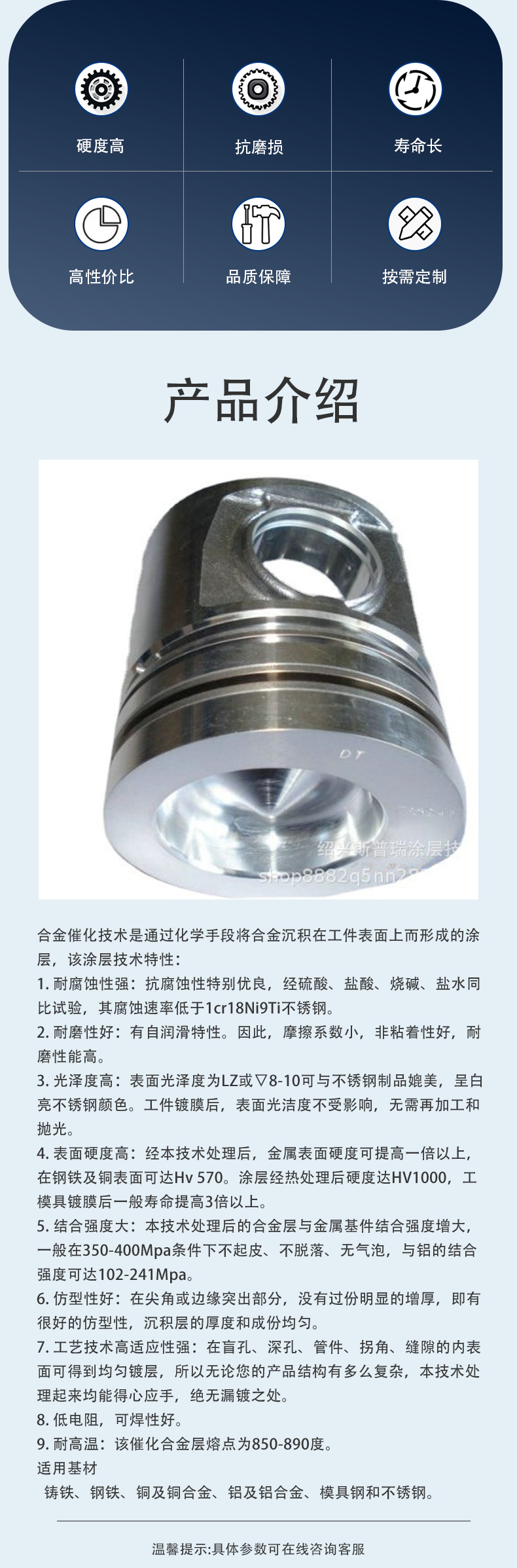 耐高温800℃耐磨自润滑活塞环柱塞表面处理 合金催化喷涂化学镀