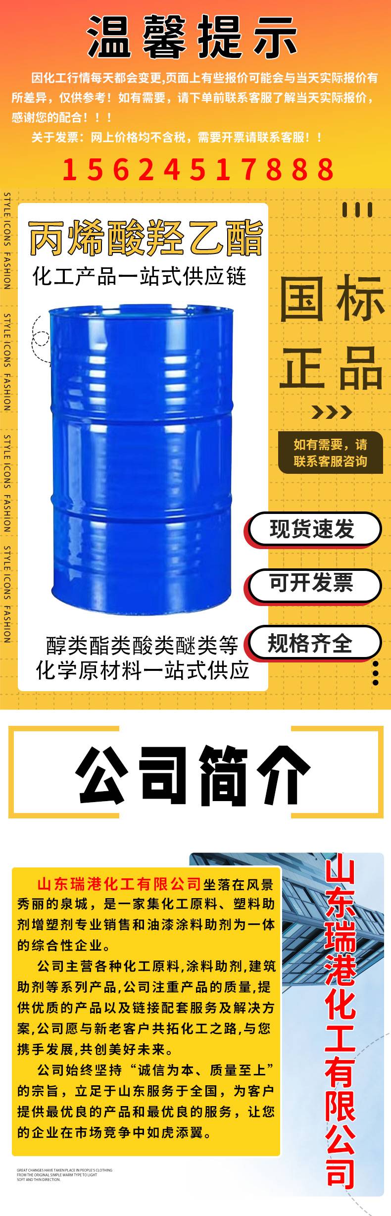 丙烯酸羟乙酯 桶装 无色液体 工业级 高强度粘合剂 树脂交联剂 国标现货