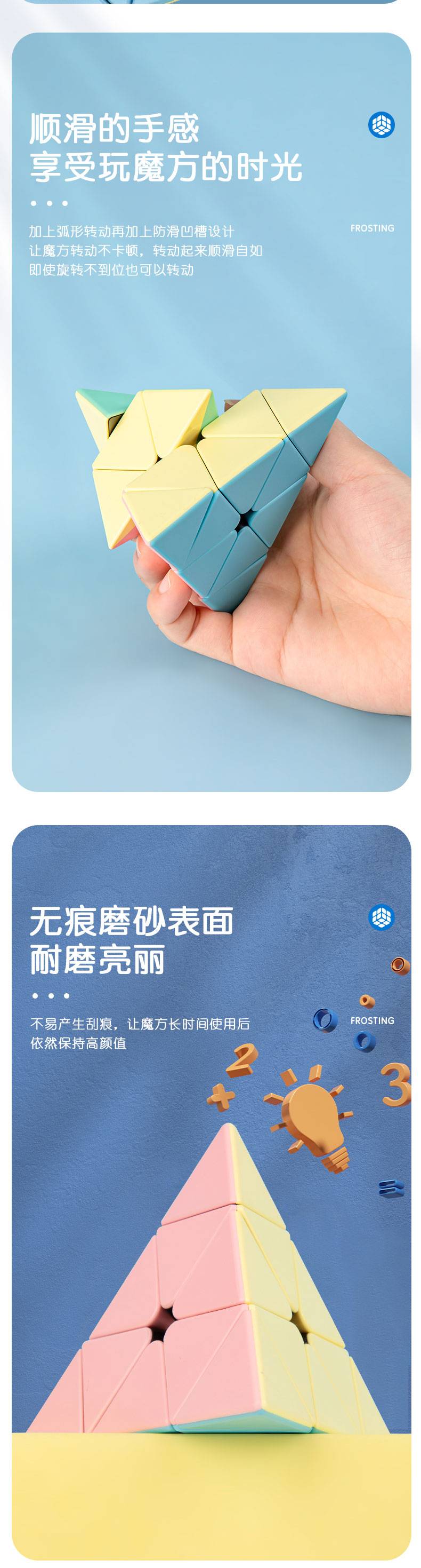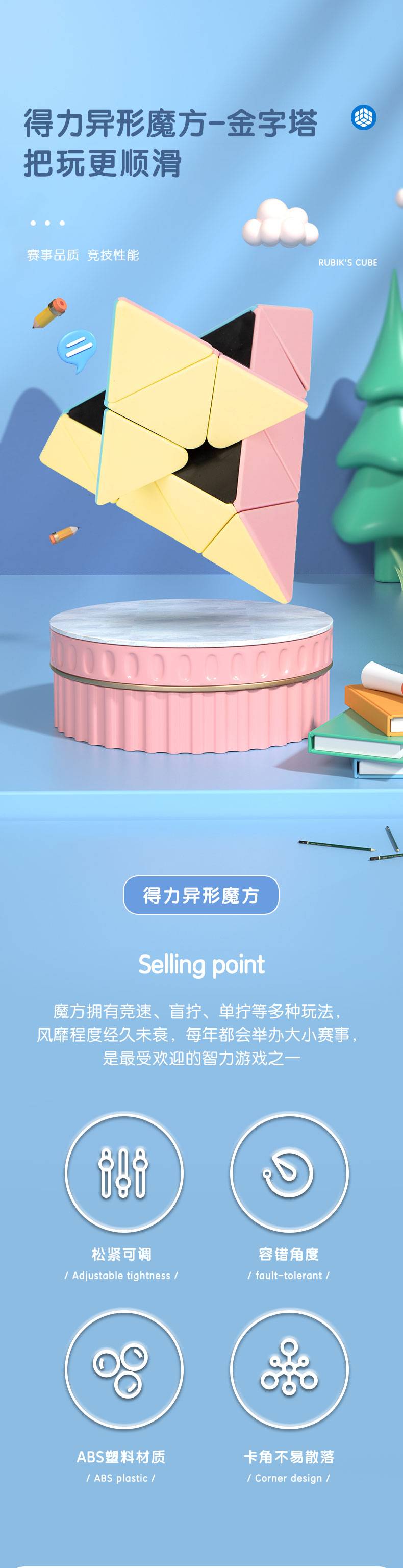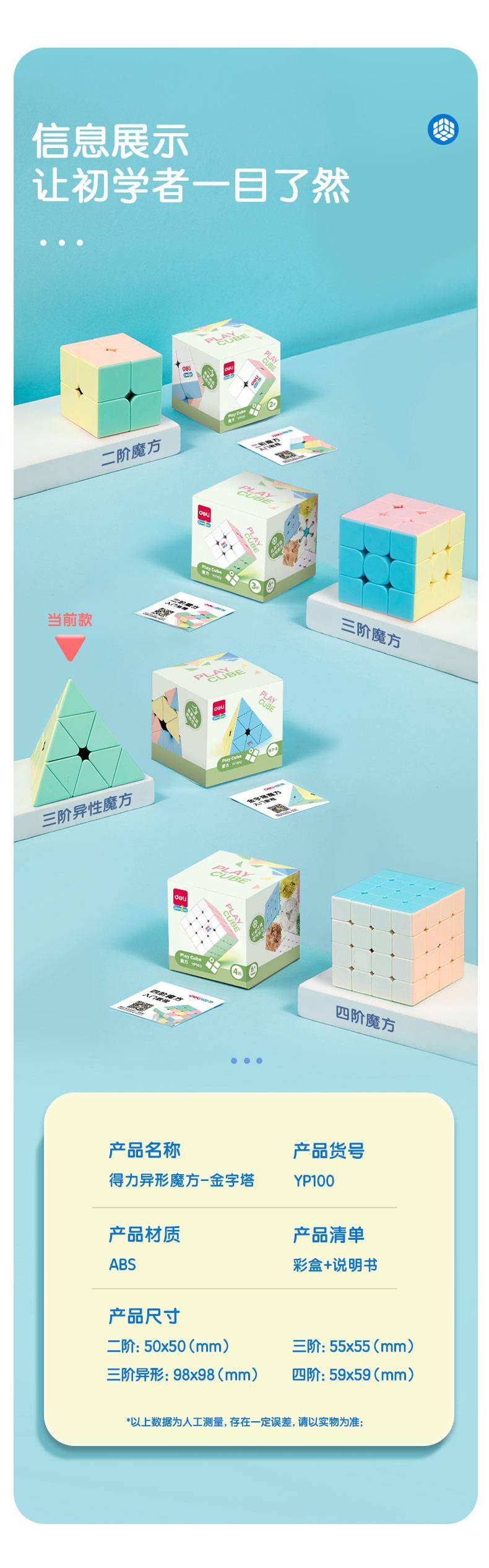 得力YP100_3阶金字塔魔方(混)(盒) 马卡龙配色 松紧可调 容错角度
