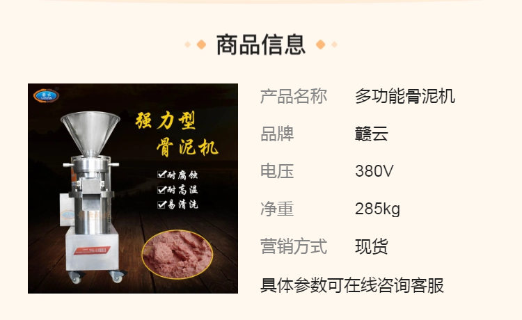 赣云多功能骨泥机 大容量商用厨房设备 高效肉泥制作工具