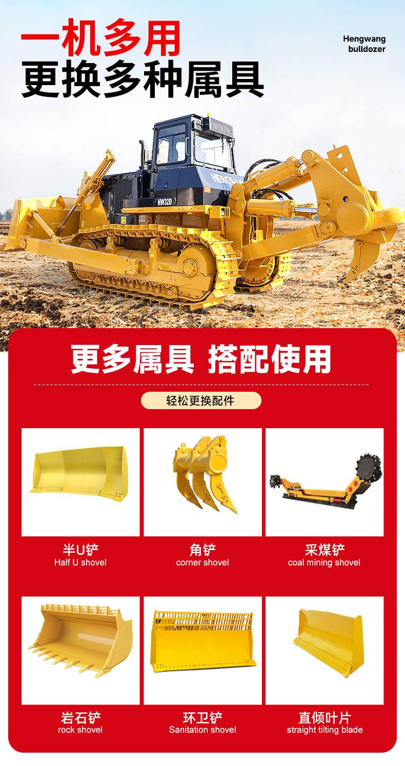 大型推土机露天矿山覆盖层清除荒地开垦农田整平履带式液压刮土机