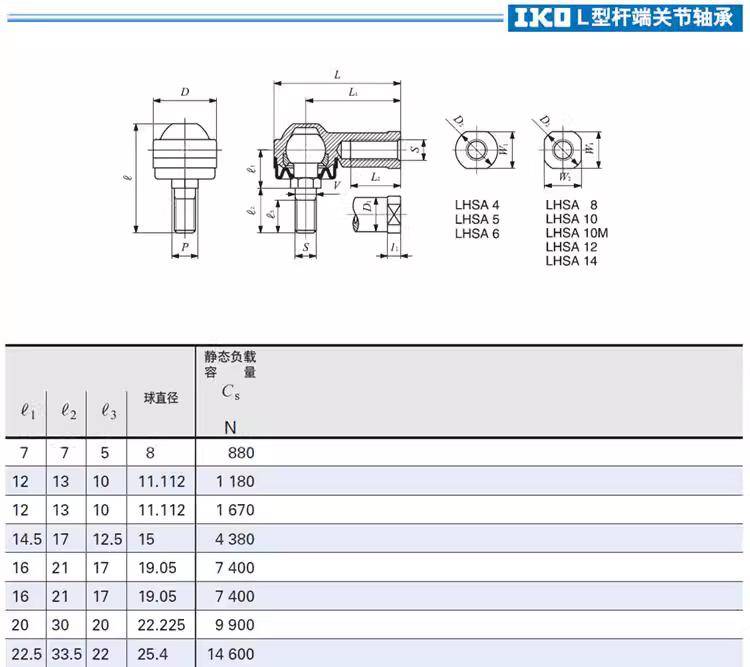日本IKO杆端关节轴承LHSA4精密LHSA5L汽车连杆LHSA6 LHSA8L LHSA10