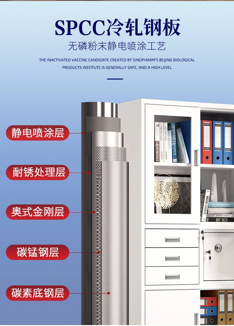 中博 不锈钢加厚办公室文件柜 学校办公用品存放柜 提高空间利用效率