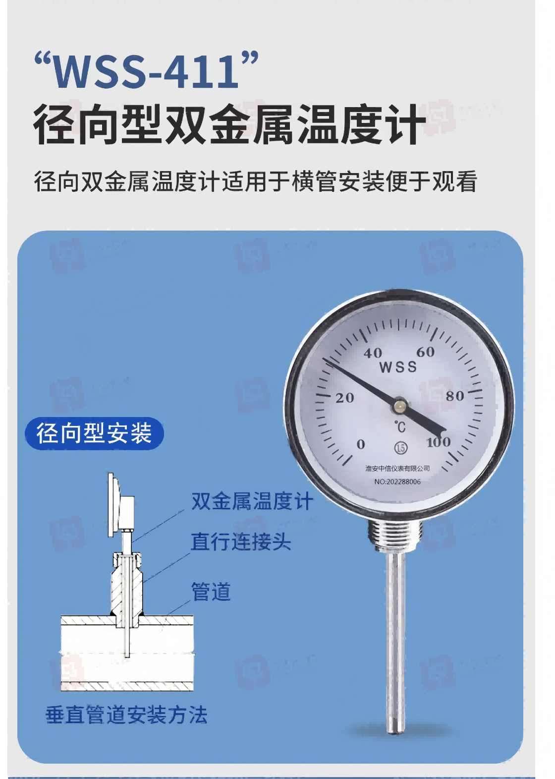 中信仪表 电接点双金属温度计 工业锅炉管道温度测量 防爆耐震