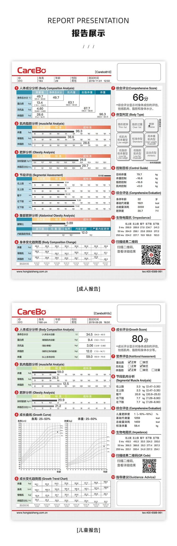 健身房体测仪 智能测量各种成分 carebo-810 鸿泰盛 体测仪器