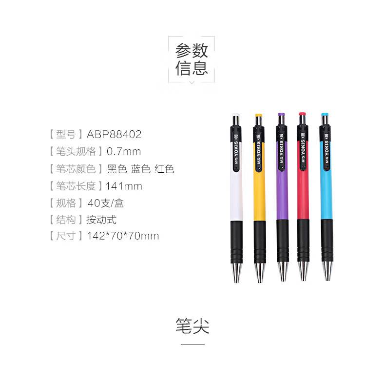晨光红色按动圆珠笔 0.7mm子弹头原子笔中油笔 40支/盒ABP88402
