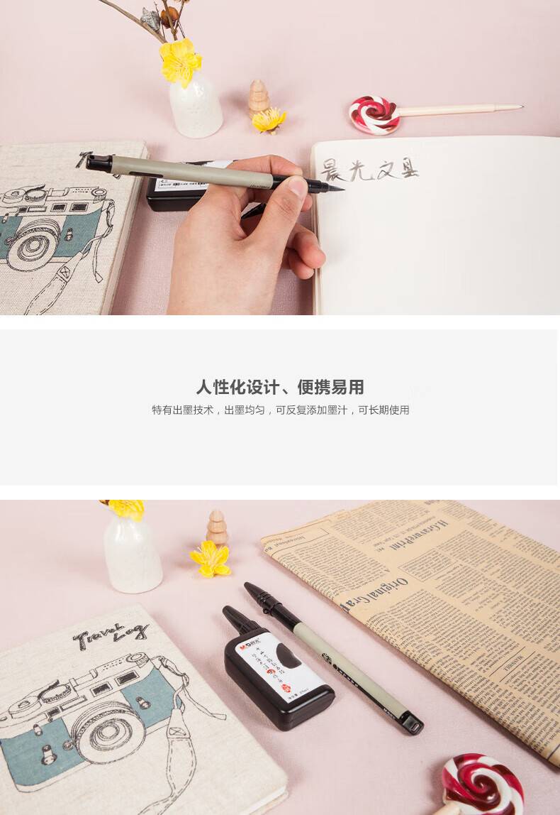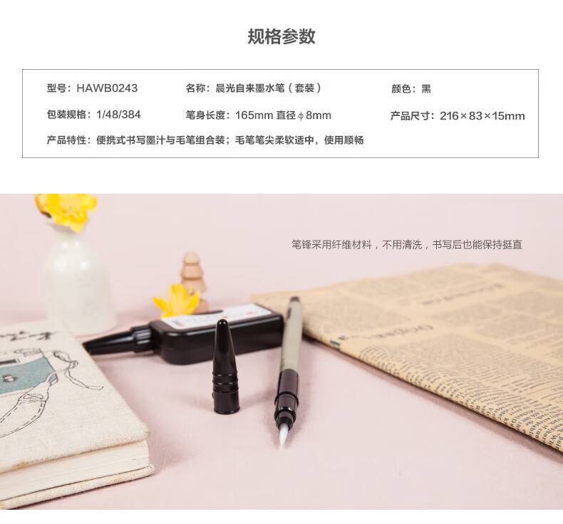 晨光自来墨水笔 国风山水画 毛笔+墨水 5套装HAWB0243