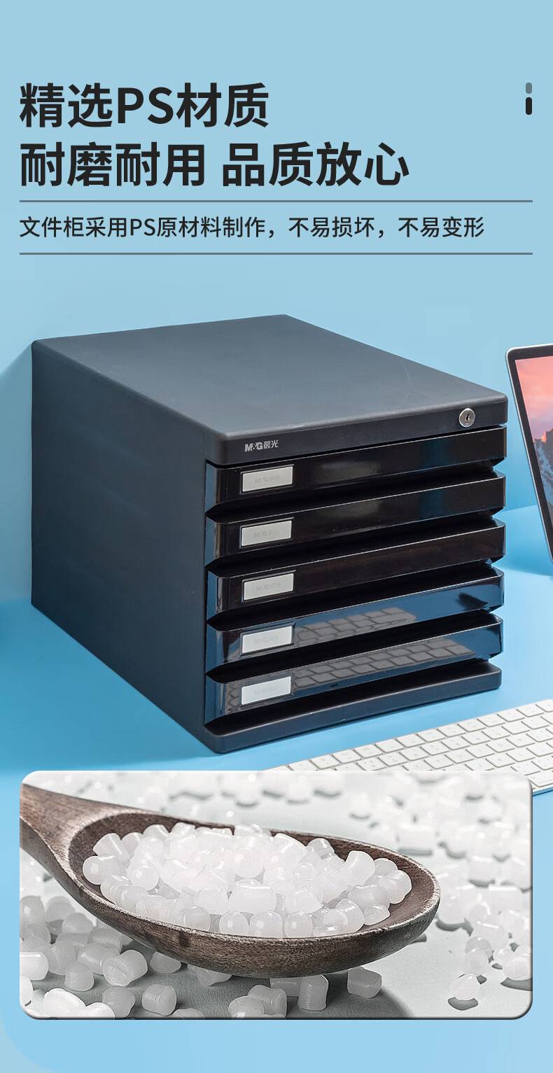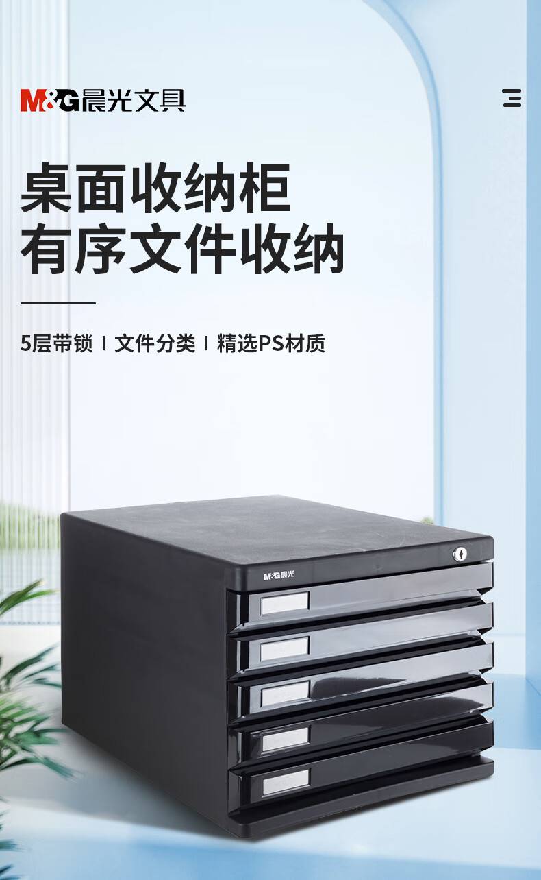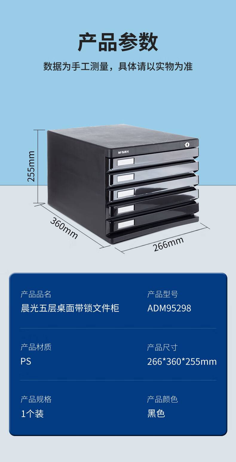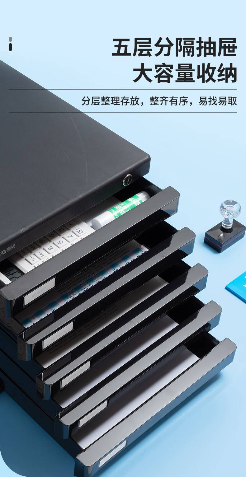 晨光5层桌面文件柜 抽屉式A4资料收纳柜 黑色单个装ADM95298