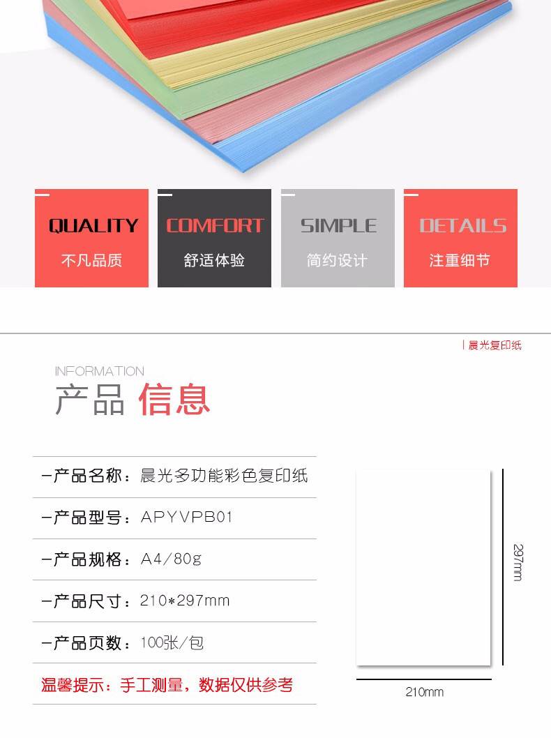 晨光A4/80g彩色多功能打印纸 手工纸复印纸 100张/袋APYVPB0131