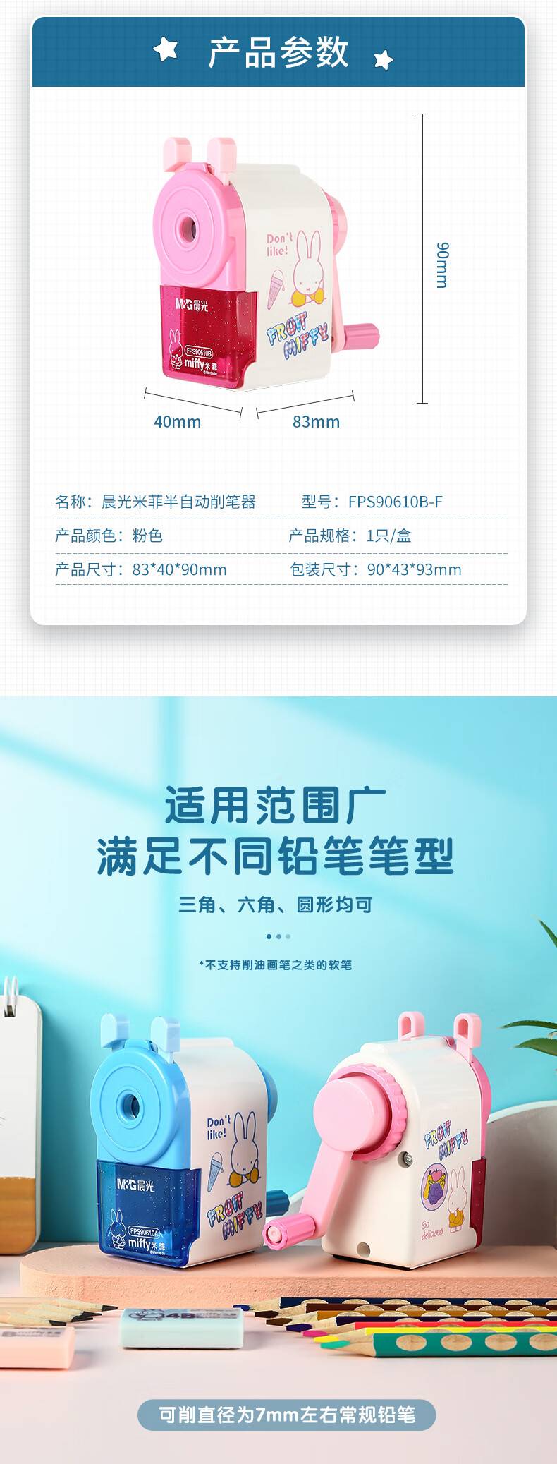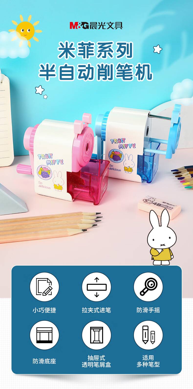 晨光削笔机 米菲系列卷笔刀/转笔刀/铅笔削笔器 粉色 单个装FPS90610